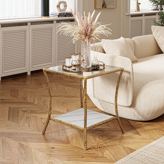 Apresente elegância contemporânea à decoração da sua casa com a mesa de centro LINSY Square. Esta mesa de centro apresenta uma moldura de ouro escovado e um tampo de vidro temperado transparente. Dê à casa uma impressão de atualização.