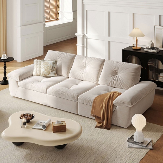 Sofá Bergere de 3 lugares em tecido branco - Conforto e estilo minimalista G290-A |