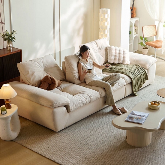 Sofá de dois lugares moderno em tecido branco, modelo BS806-A, confortável e minimalista.Próxima :
