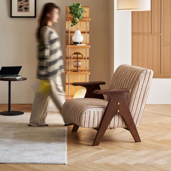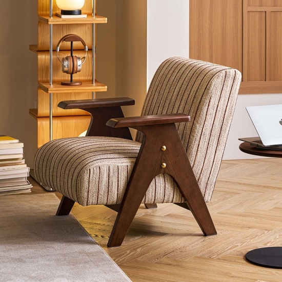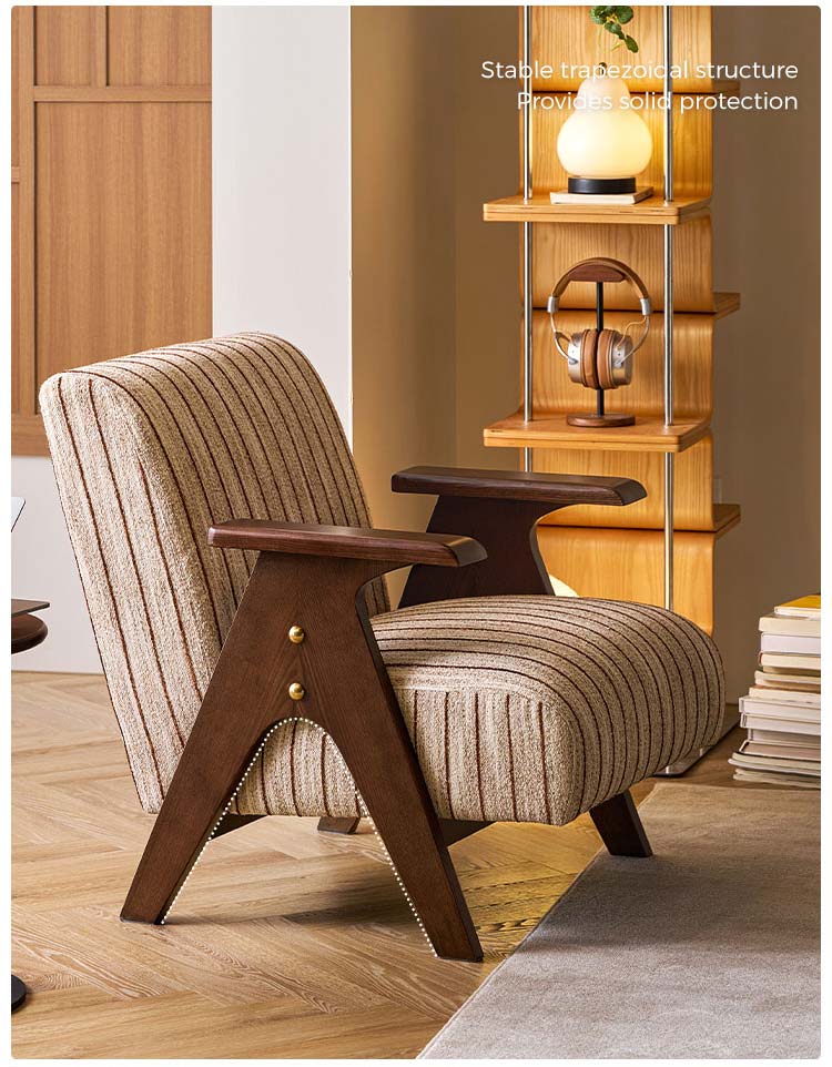 Projetada para oferecer conforto duradouro e um estilo atemporal, esta cadeira moderna combina uma estrutura robusta de madeira maciça com estofamento em tecido de alta qualidade. O assento e o encosto generosamente acolchoados oferecem suporte excepcional, tornando-a o lugar perfeito para ler ou relaxar na sua sala de estar. Seu design versátil se integra perfeitamente a diversos estilos de decoração, do rústico ao moderno. Uma adição durável e elegante para qualquer lar.