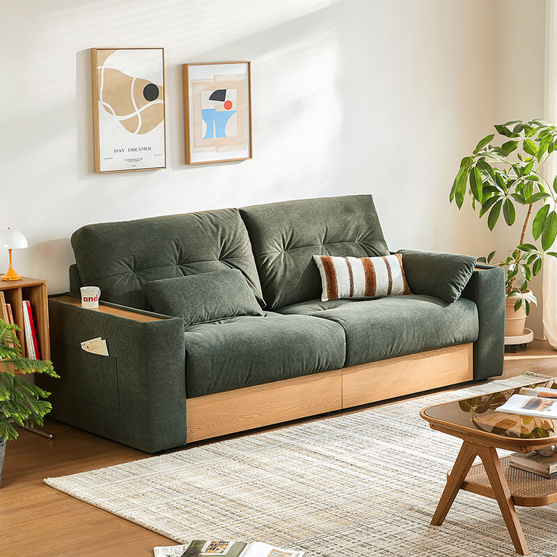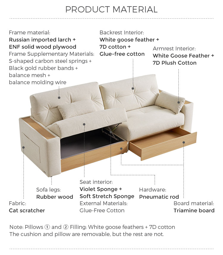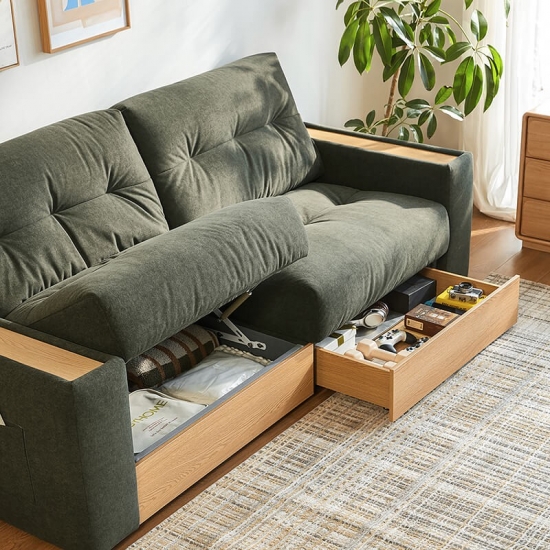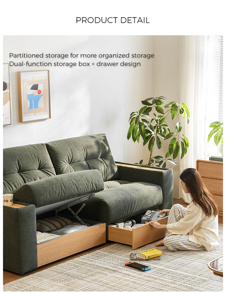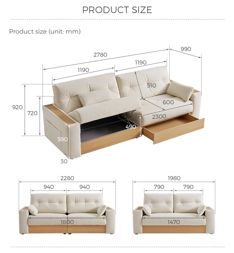 nórdico multi sofá-cama dobrável de tecido funcional simples sala de estar familiar madeira maciça e quadros de compensado composto pu & tecido Sinomax espuma perna abdominal mais forte