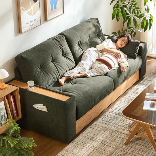 Eleve seu espaço de convivência com nosso sofá-cama de madeira maciça — uma mistura harmoniosa da elegância da natureza e do design inteligente. Construído para durar gerações, este sofá-cama combina o aconchego da madeira nobre premium com a versatilidade de uma cama conversível compacta, perfeita para proprietários ecologicamente conscientes e entusiastas do design.