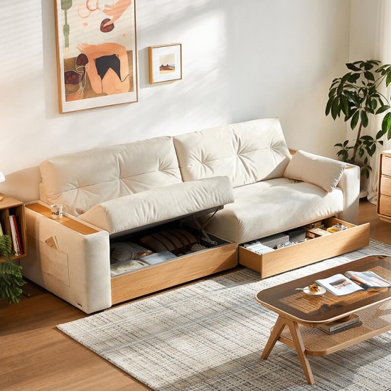 Sofás-cama brancos para sala de estar com estrutura de madeira G076-A