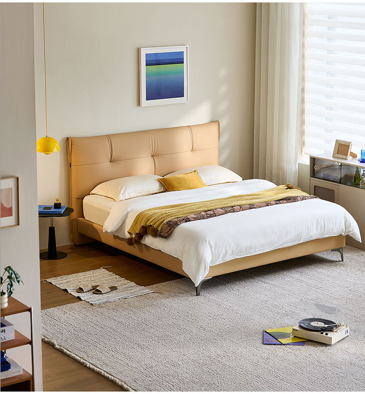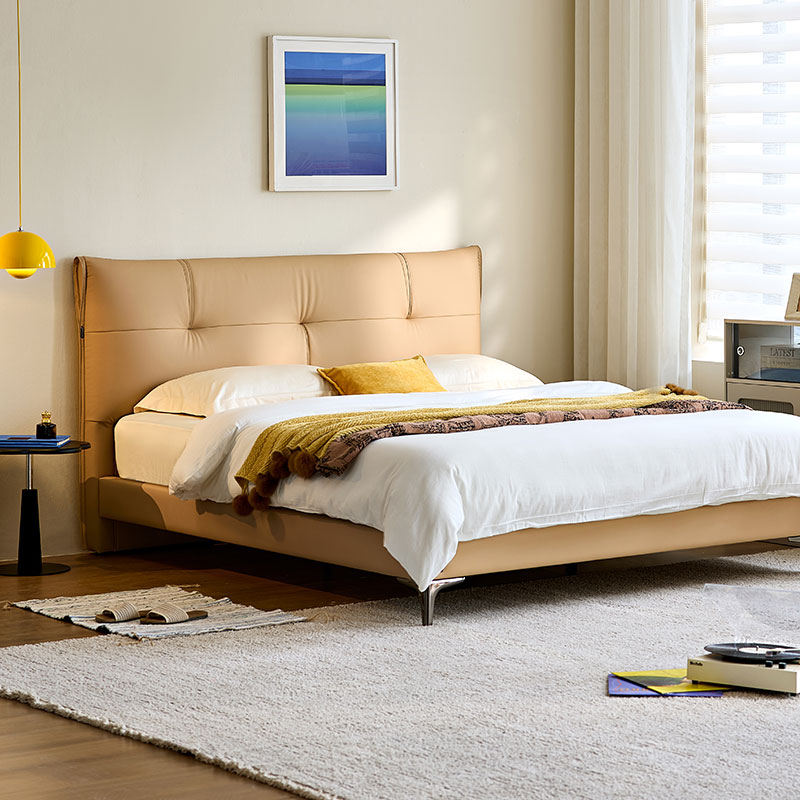 Modernidade atemporal: Com suas linhas limpas e estofamento texturizado, esta cama serve como uma peça central deslumbrante.