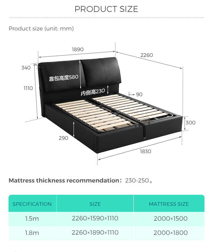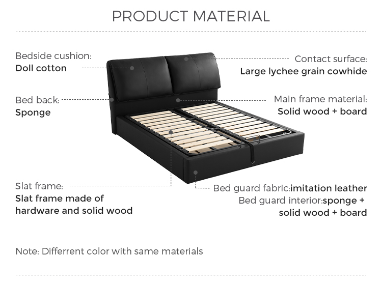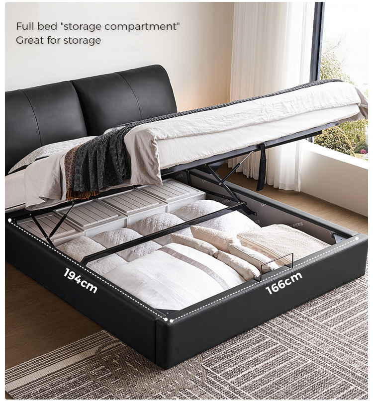 Cama de armazenamento pneumática de couro genuíno para uso doméstico e hoteleiro PC109-A |