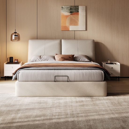 Você está procurando uma cama para renovar seu quarto? Venha conferir nossa cama com armazenamento hidráulico — uma fusão perfeita de design elegante e funcionalidade inteligente. O mecanismo de elevação suave, acionado por pistões hidráulicos duráveis, oferece fácil acesso a um amplo espaço de armazenamento oculto, ideal para guardar roupas de cama, malas ou itens sazonais sem abrir mão do estilo.
