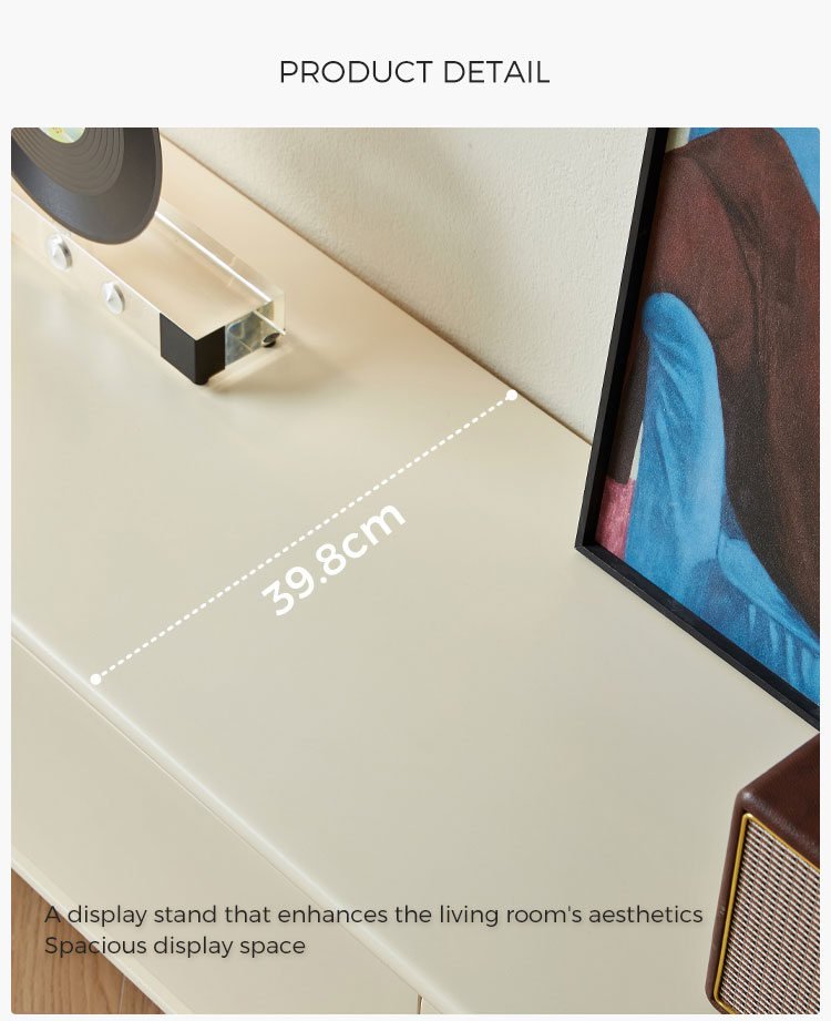 Design espaçoso e proporcional: Com uma generosa largura de 1,8 metro (aproximadamente 70 polegadas), este console tem as proporções perfeitas para acomodar televisores de tela grande, oferecendo ao mesmo tempo uma superfície substancial para soundbars e itens decorativos.