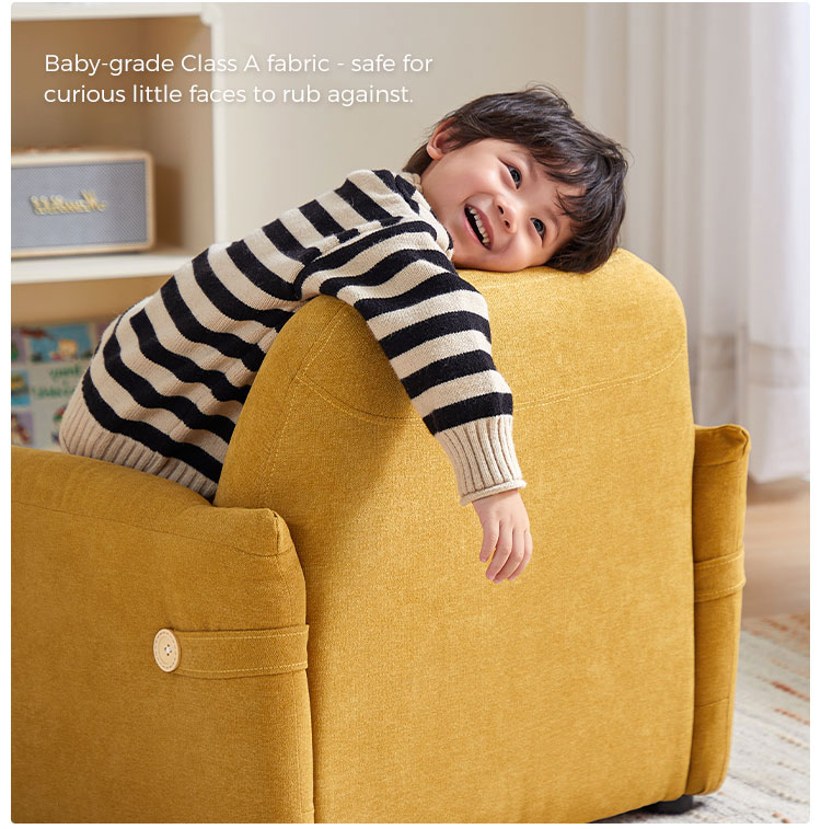 Dê ao seu pequeno o seu próprio lugar "de gente grande" com a nossa adorável poltrona infantil de tecido. Esta mini poltrona combina um design fofo e aconchegante com a praticidade que os pais precisam. Seja qual for a sua escolha, vibrante ou colorida, esta poltrona é perfeita para crianças. Amarelo Mostarda ou o calmante Amêndoa Branca Com seu tecido fácil de limpar e estrutura resistente, é o complemento perfeito para qualquer sala de jogos ou quarto. Não é apenas uma cadeira — é o novo lugar favorito deles para a hora da história!