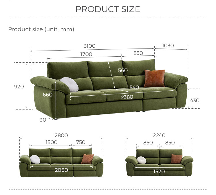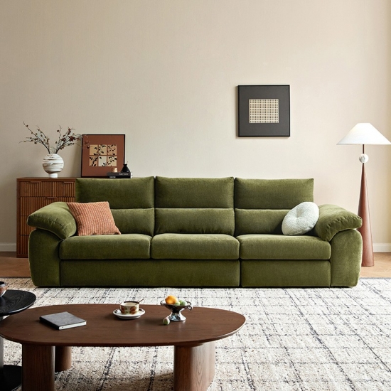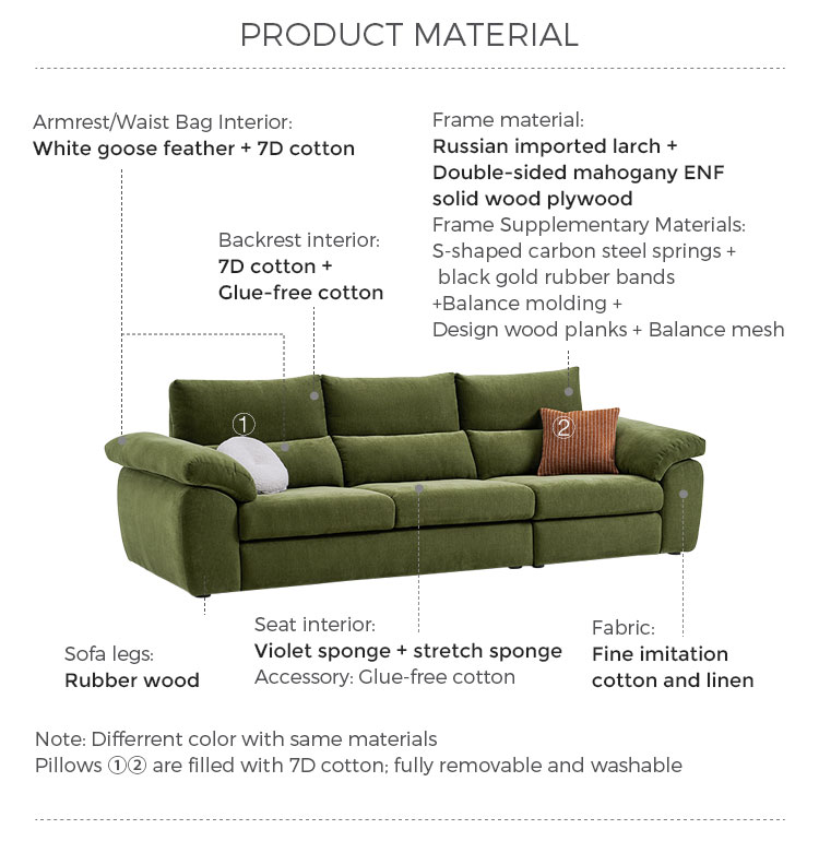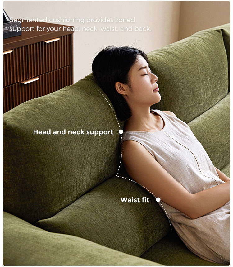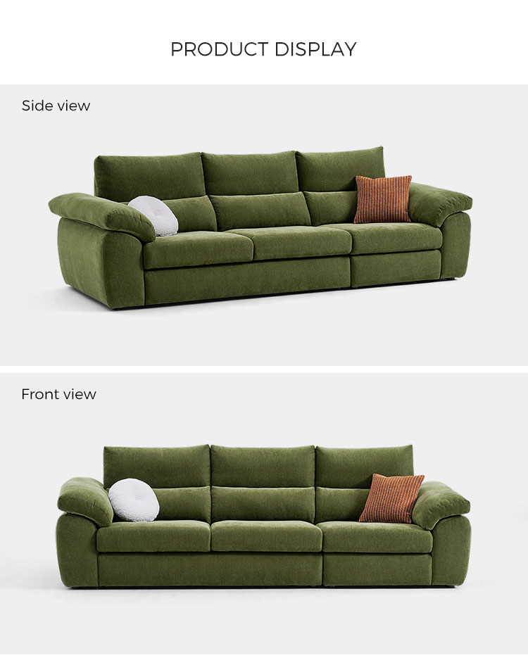 Estofamento em tecido de alta qualidade: Confeccionado em tecido durável, fácil de limpar e macio ao toque. O material foi escolhido por sua resistência ao desgaste e ao desbotamento, garantindo que o sofá permaneça bonito e convidativo por muitos anos.