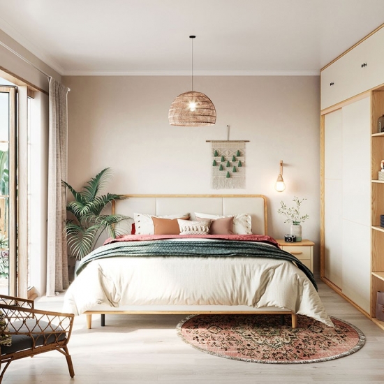 Bedroom Use Beige Color Double Bed