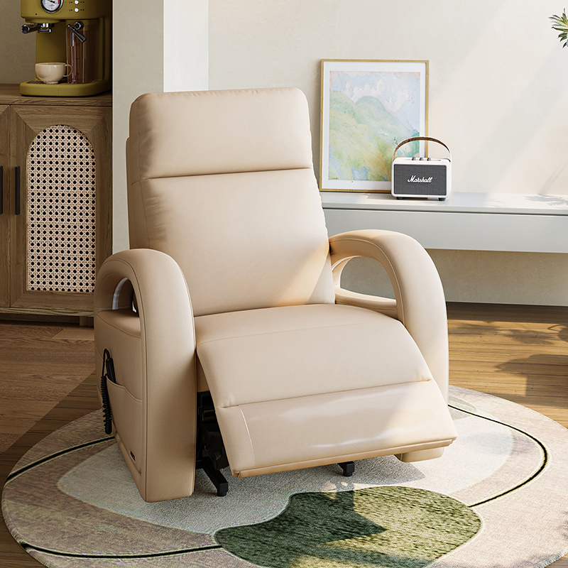 Esta poltrona reclinável manual foi projetada tendo em mente a ergonomia e a estética. Adota um design de curva ergonômica para dar ao corpo um bom suporte e conforto. O ângulo do encosto e do assento da cadeira pode ser ajustado de acordo com as necessidades pessoais, permitindo que você encontre a posição mais confortável para você e relaxe.