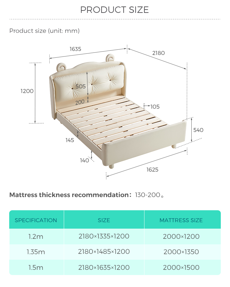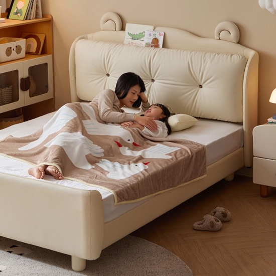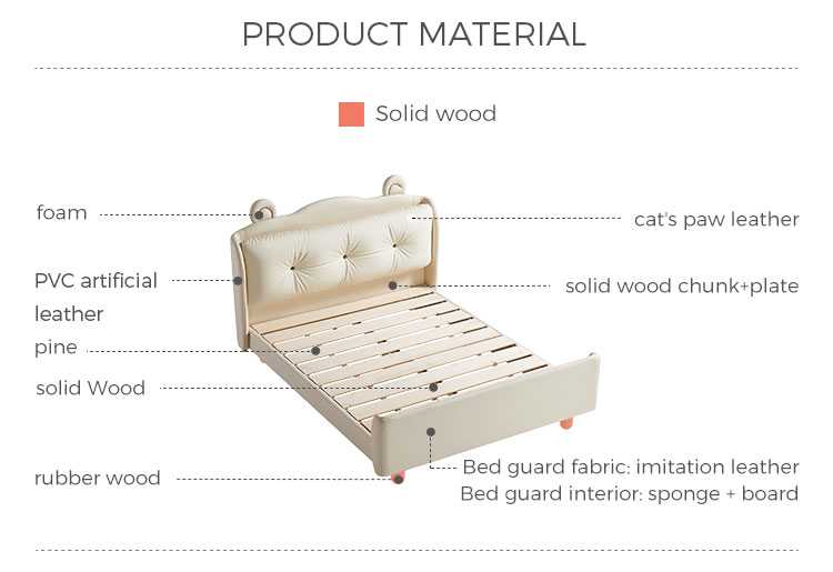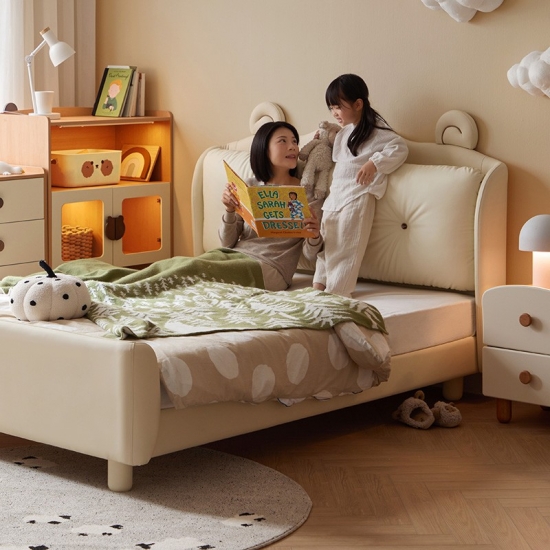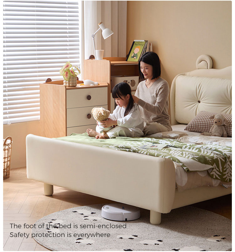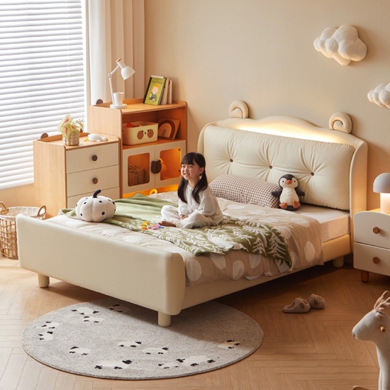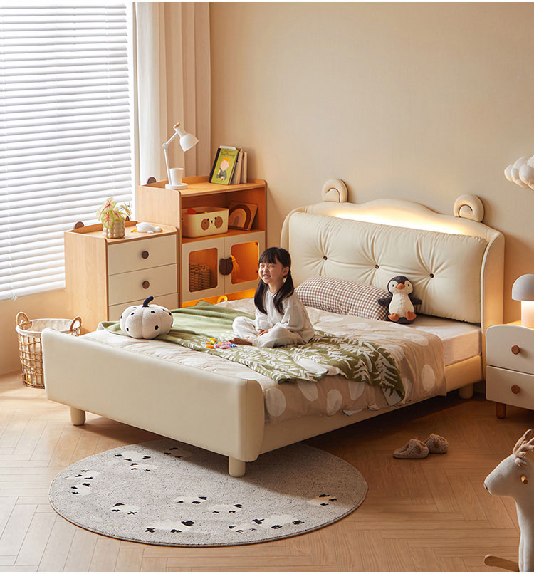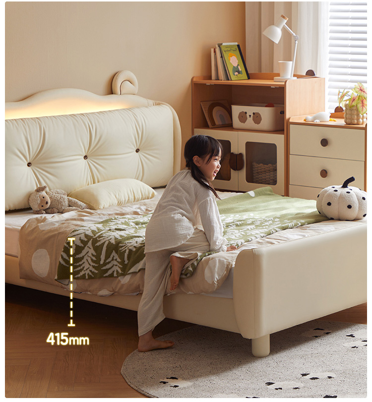 7Cama infantil LINSY creme branco com cabeceira de couro TBC357-A