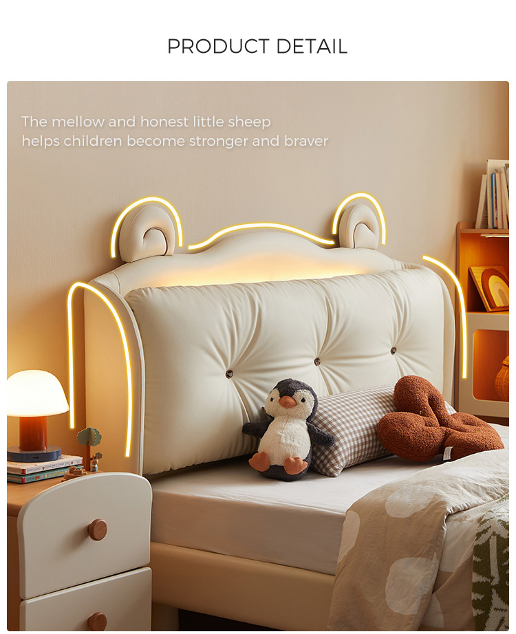 Cama de solteiro infantil LINSY Lovely com cabeceira de couro PC177-APróxima :
