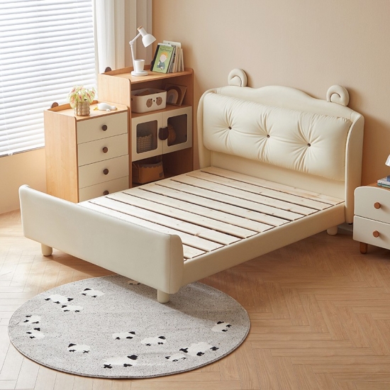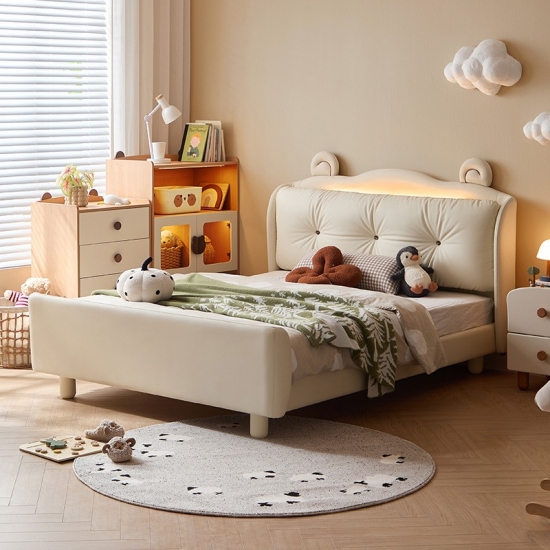 Cama infantil LINSY creme branco com cabeceira de couro TBC357-A |