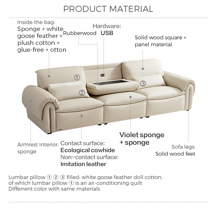 Sofá doméstico de couro genuíno estilo popular LINSY PS060-A consulte Mais informação