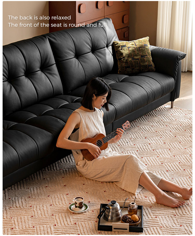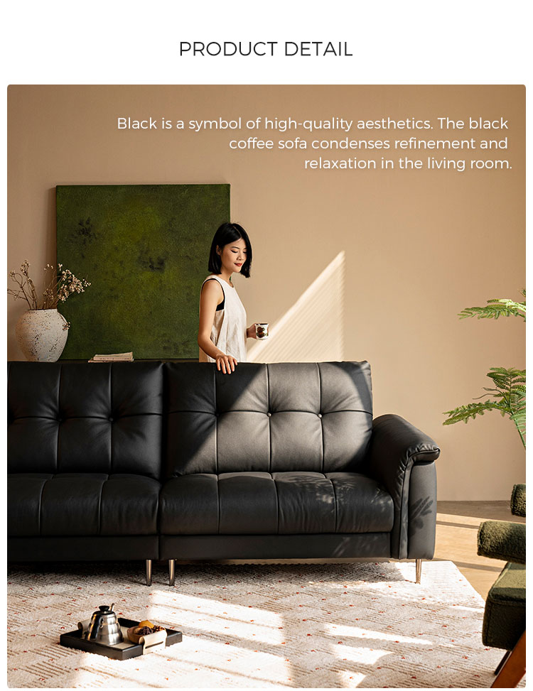 7Sofá Chesterfield de couro preto moderno LINSY PS660-A