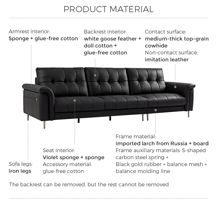 Estrutura: Madeira maciça + Madeira compensada Espuma: Couro + Espuma de boneca + Espuma de alta qualidade |