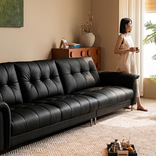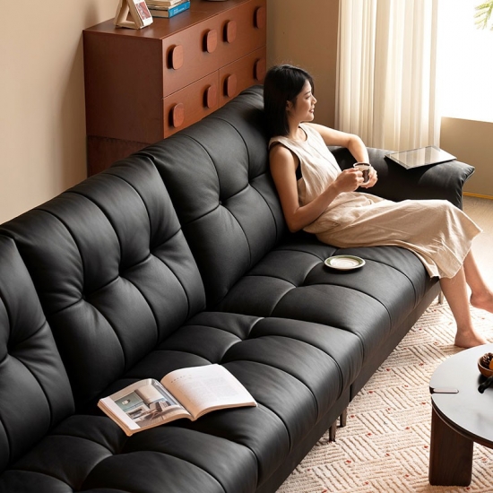 Sofá Chesterfield de couro preto moderno LINSY PS660-A |