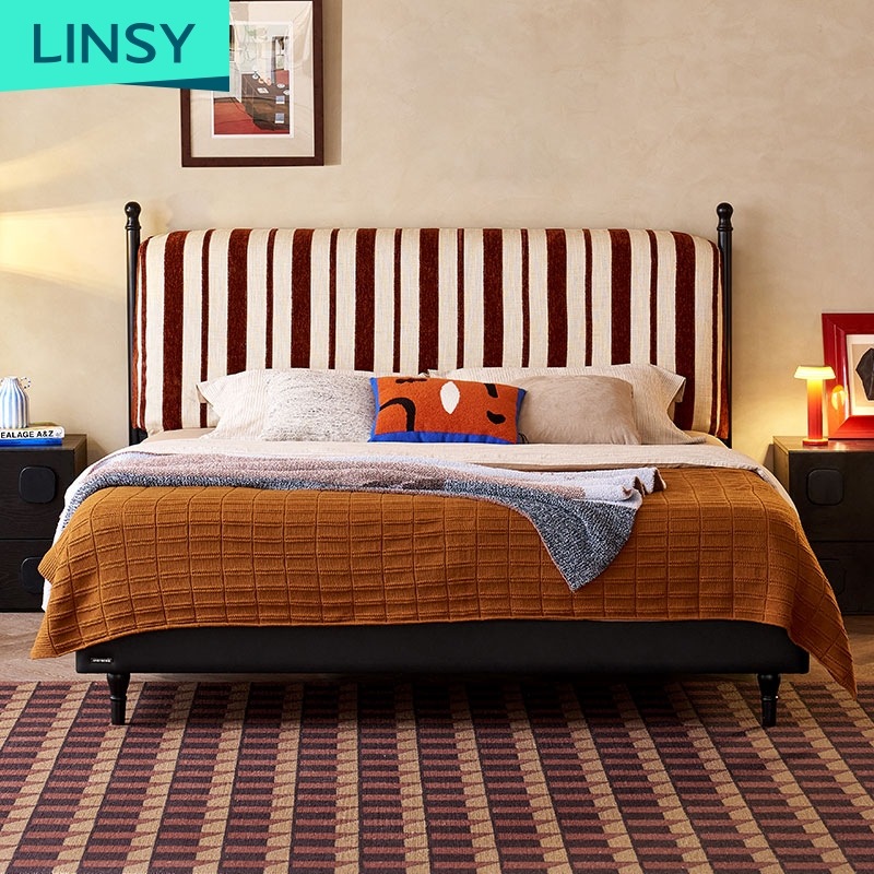 7Cama moderna LINSY em tecido com estampa de garras de gato na cor bordô BC502-A