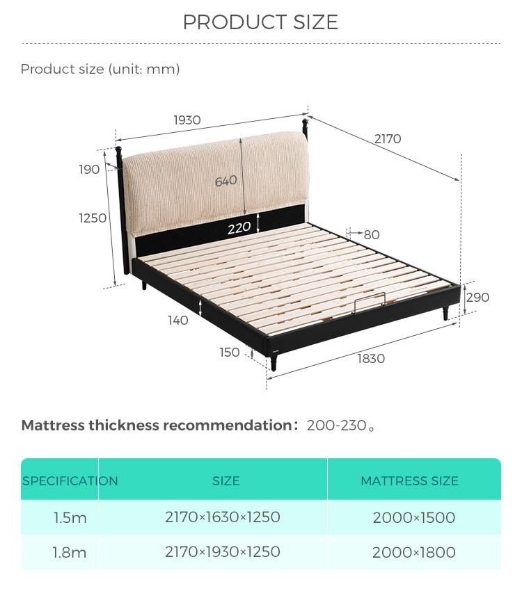 Estrutura de suporte sólida: Construída com uma base robusta de ripas para maior suporte do colchão e durabilidade prolongada.