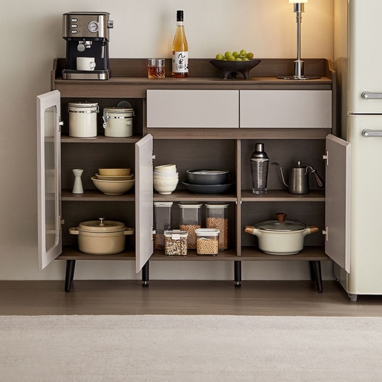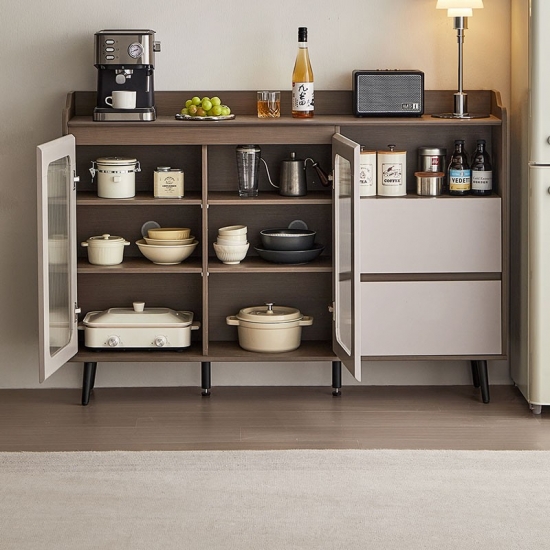 Este elegante aparador discreto oferece armazenamento prático com um design compacto. Medindo entre 0,8 e 1,4 metros de largura, sua altura modesta proporciona fácil acesso, mantendo ampla capacidade de armazenamento. Perfeito como buffet para sala de jantar, console para sala de estar ou organizador de entrada, esta peça versátil possui gavetas e portas de armário deslizantes com interior ajustáveis/armazenamento aberto.