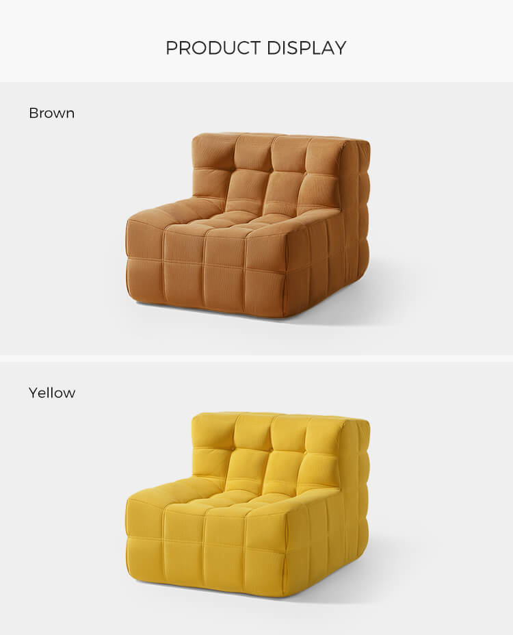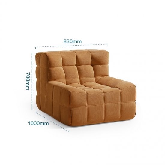 Eleve o seu espaço de vida com nosso moderno sofá modular individual, projetado para combinar sofisticação e conforto. Esta peça é perfeita para cantos de leitura aconchegantes, salas de estar chiques ou como cadeira de destaque em seu quarto. Seu tamanho compacto o torna uma excelente escolha para espaços pequenos sem comprometer o estilo ou a função.