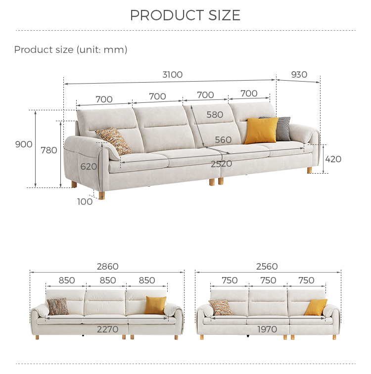 7Sofá grande de tecido branco com design moderno LINSY BS183-B
