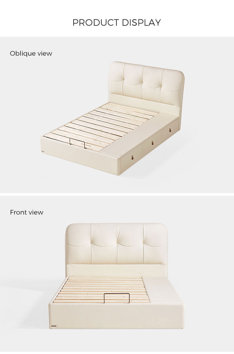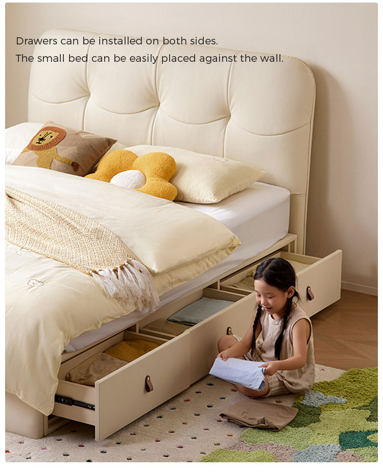 Apresentamos a nossa moderna cama infantil em couro genuíno, uma combinação perfeita de estilo elegante, conforto luxuoso e funcionalidade prática. Projetada para a família moderna, esta cama cria um santuário sereno e organizado para o seu filho.