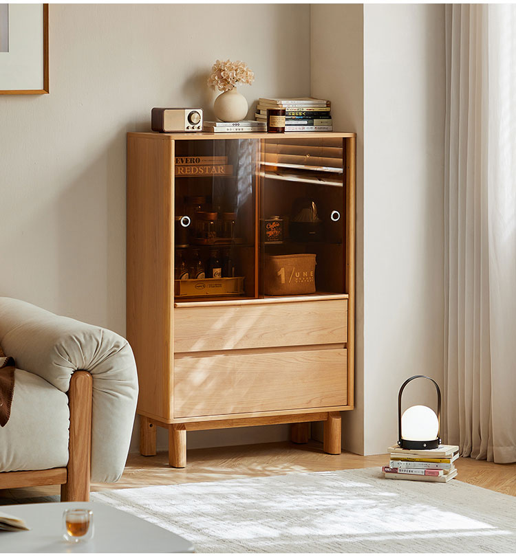 7Armário de exposição moderno rústico de madeira natural LINSY UB3X-A
