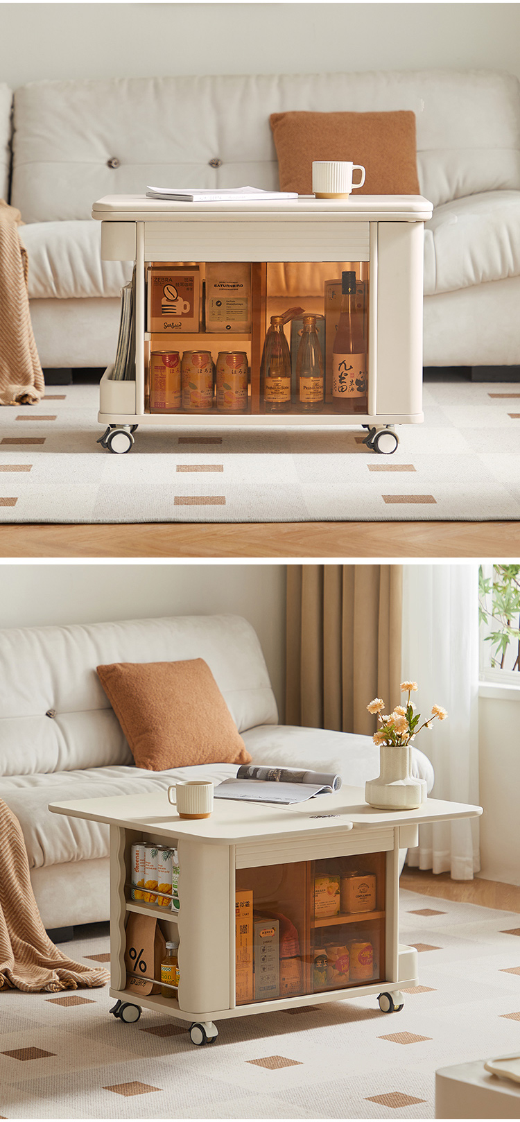 Uma pequena mesa de café quadrada que combina estilo moderno e vintage que está aqui! Não apenas tem um design elegante, mas também vem com espaço de armazenamento multifuncional de camada dupla, dando a você e a seus amigos peludos um espaço quente para se divertir A cor bege é um design quente para a sua sala de estar.