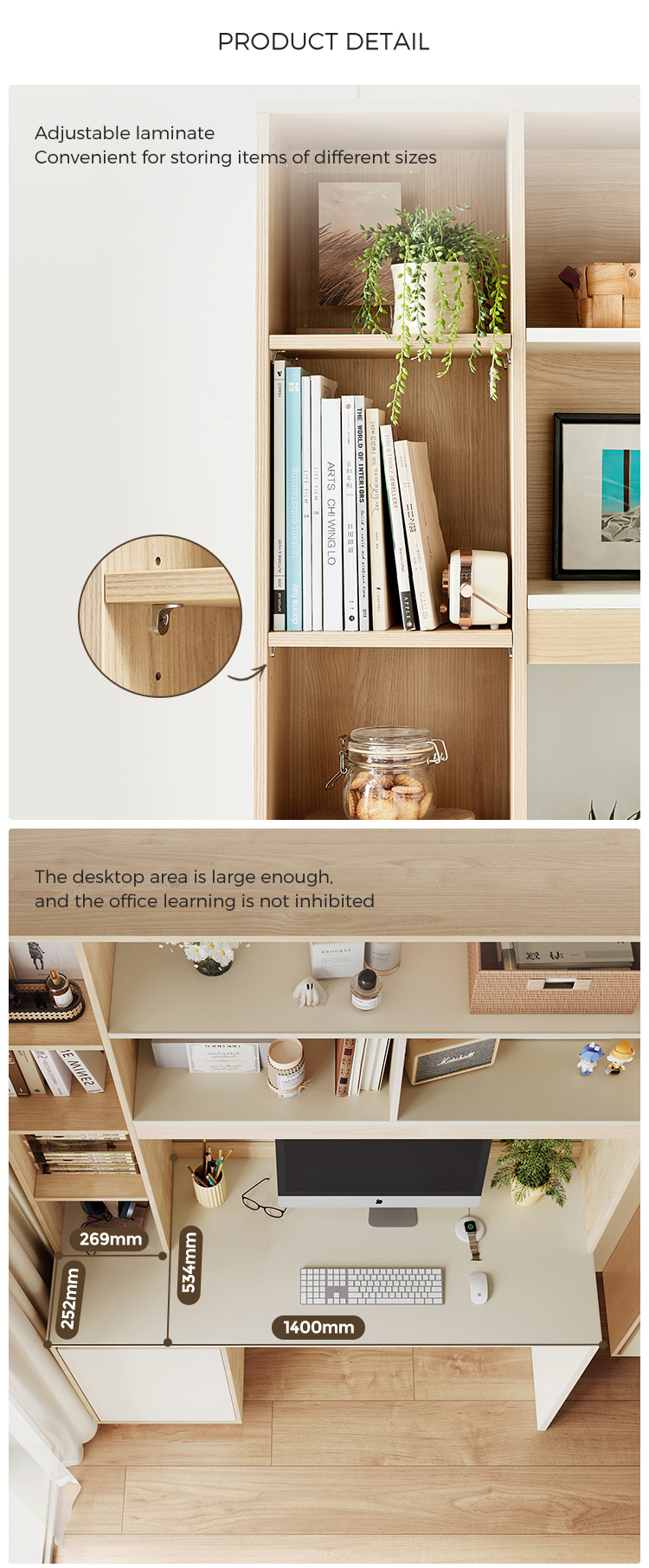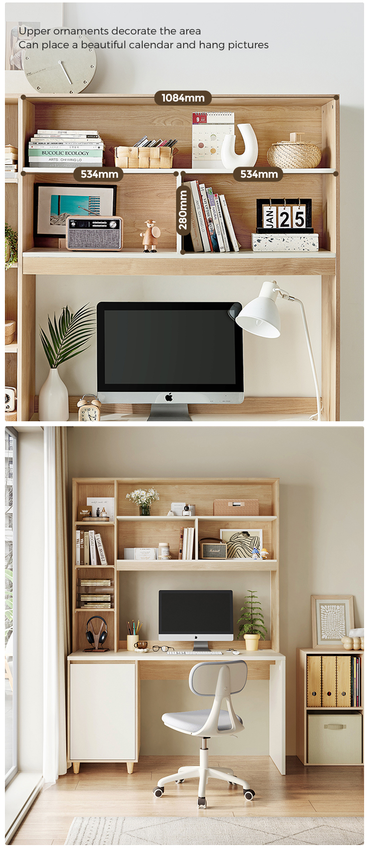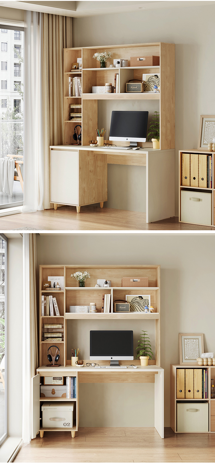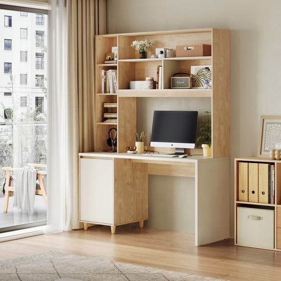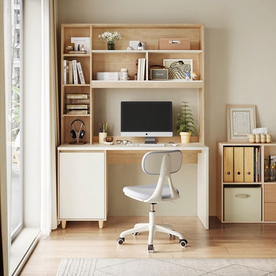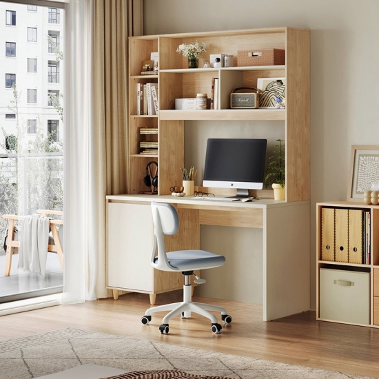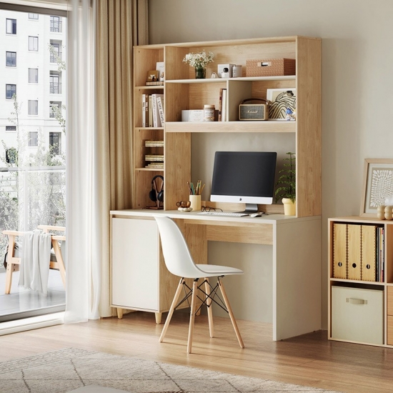 7Secretária LINSY estilo moderno em madeira cor de 1,2 m com prateleiras de armazenamento JV7V-A