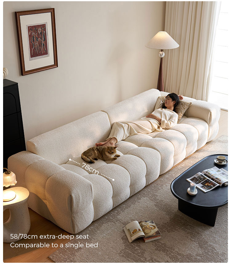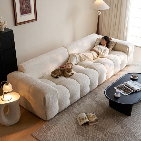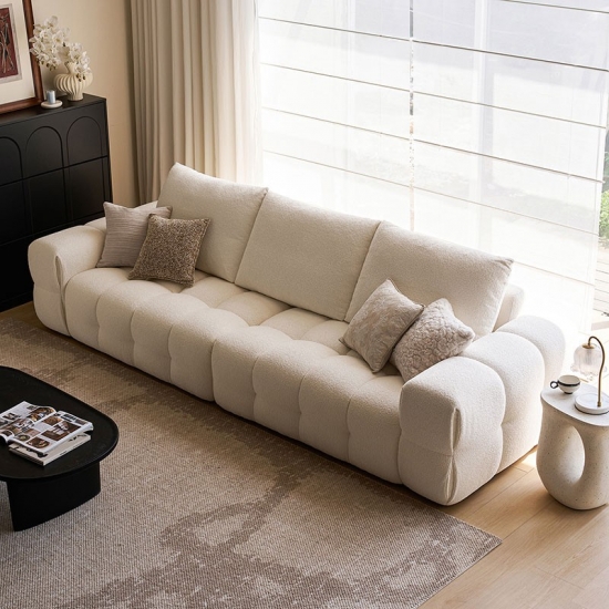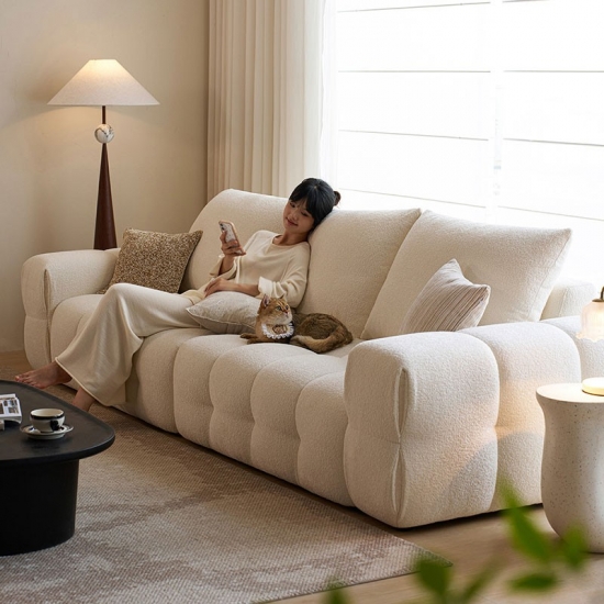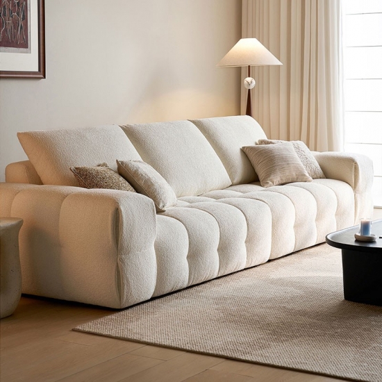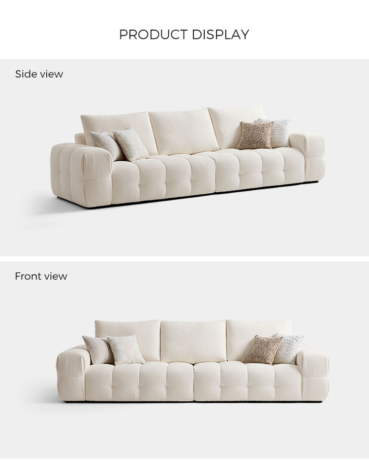 Apresentamos a peça central da vida moderna: nosso sofá de tecido branco imaculado. Inspirado nas linhas puras e na elegância rítmica do formato do tofu, este sofá combina design minimalista com um conforto profundo e convidativo. Não é apenas um móvel; é uma declaração de estilo sereno e contemporâneo.
