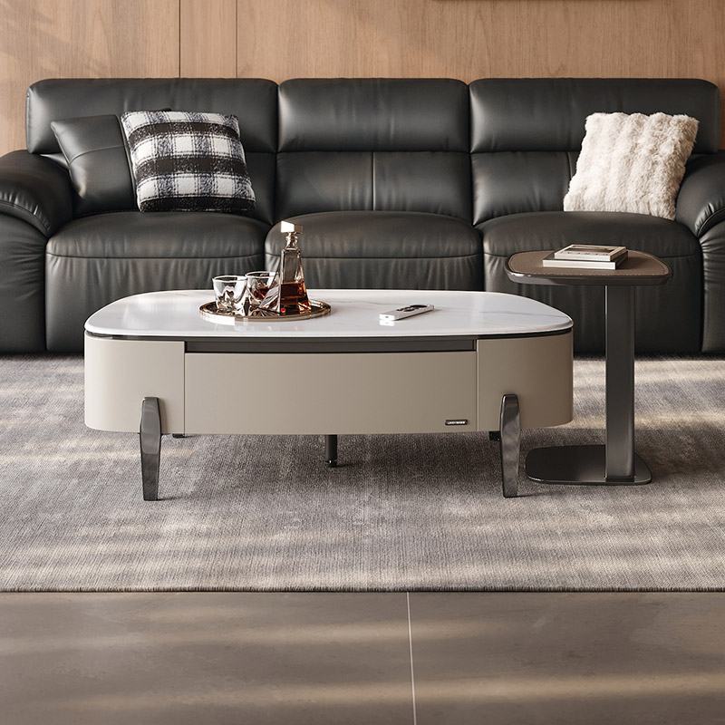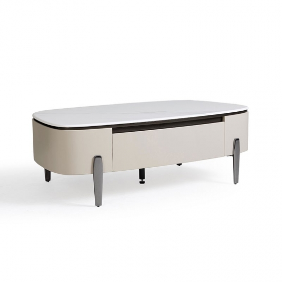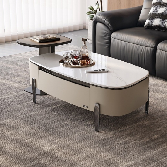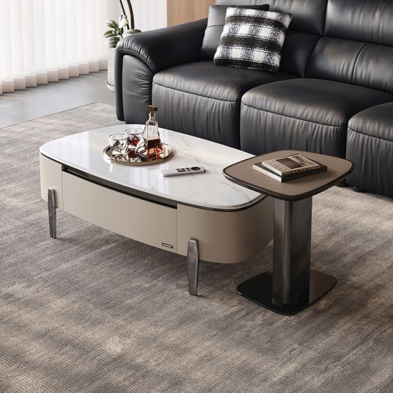 Defina seu espaço com esta mesa de centro retangular, onde a robustez industrial encontra a elegância moderna. Ela apresenta um painel de pedra durável com textura única sobre uma estrutura elegante e resistente de aço inoxidável, criando uma combinação perfeita entre estética natural e funcionalidade contemporânea.