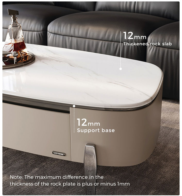 Tampo de pedra natural: Cada mesa apresenta um painel de pedra único com textura bruta, trazendo um elemento orgânico e sofisticado ao seu espaço. O toque frio e os veios distintos garantem que não haja duas mesas exatamente iguais.