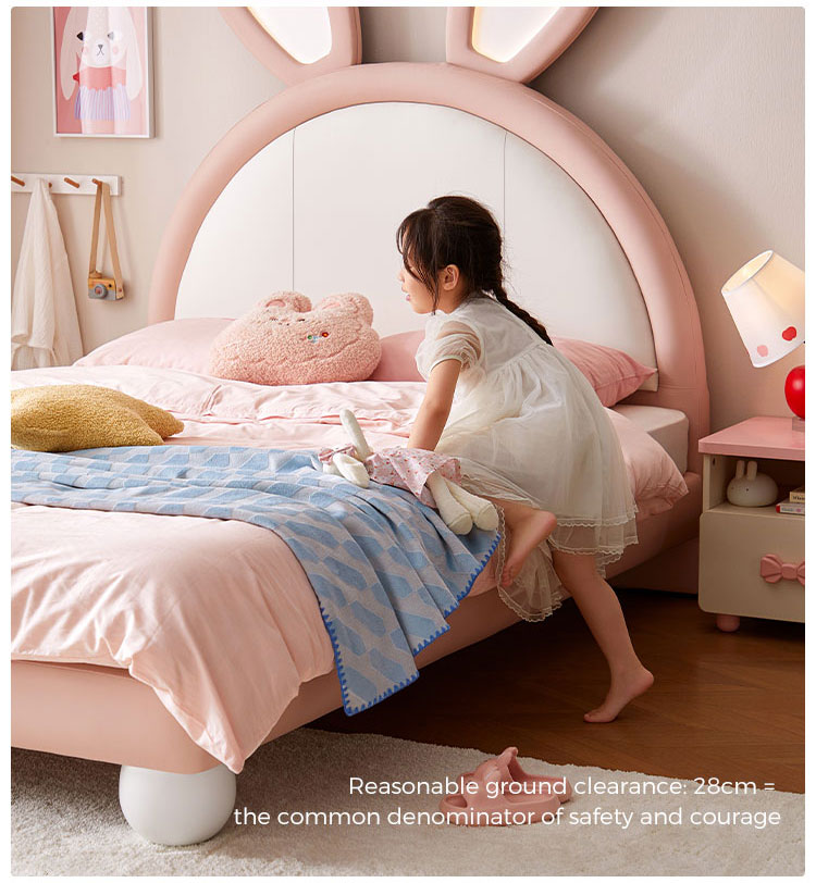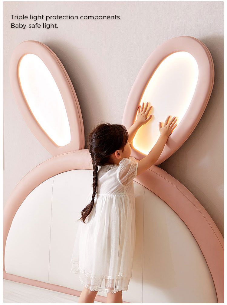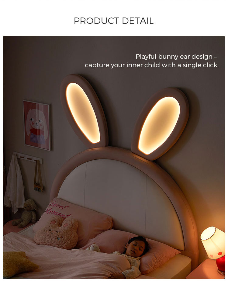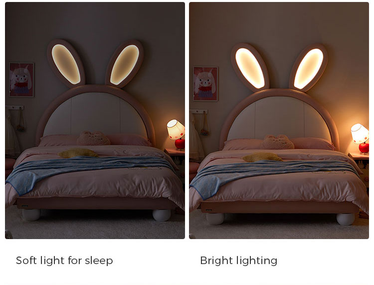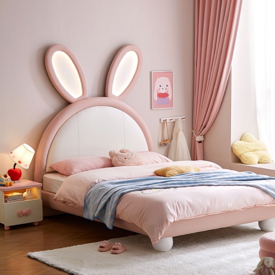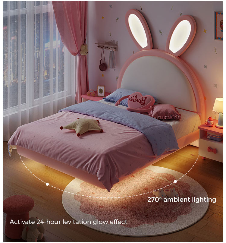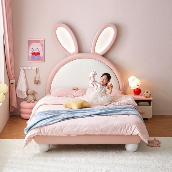 7Cama de coelho rosa LINSY com orelhas ajustáveis que brilham no escuro e revestimento em couro PC131-A