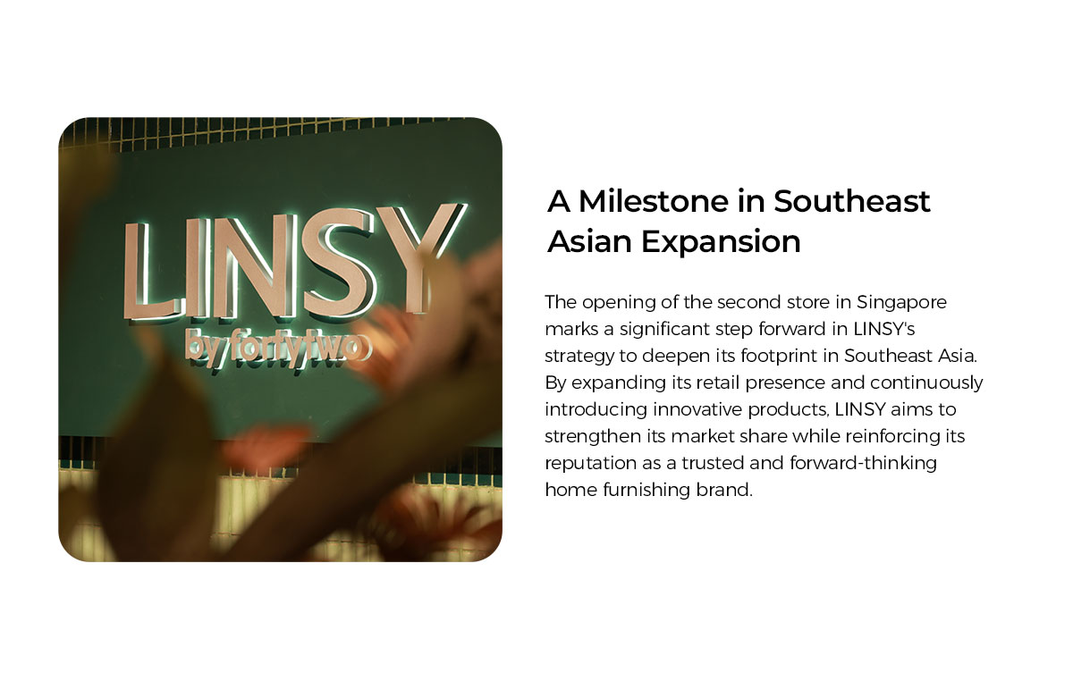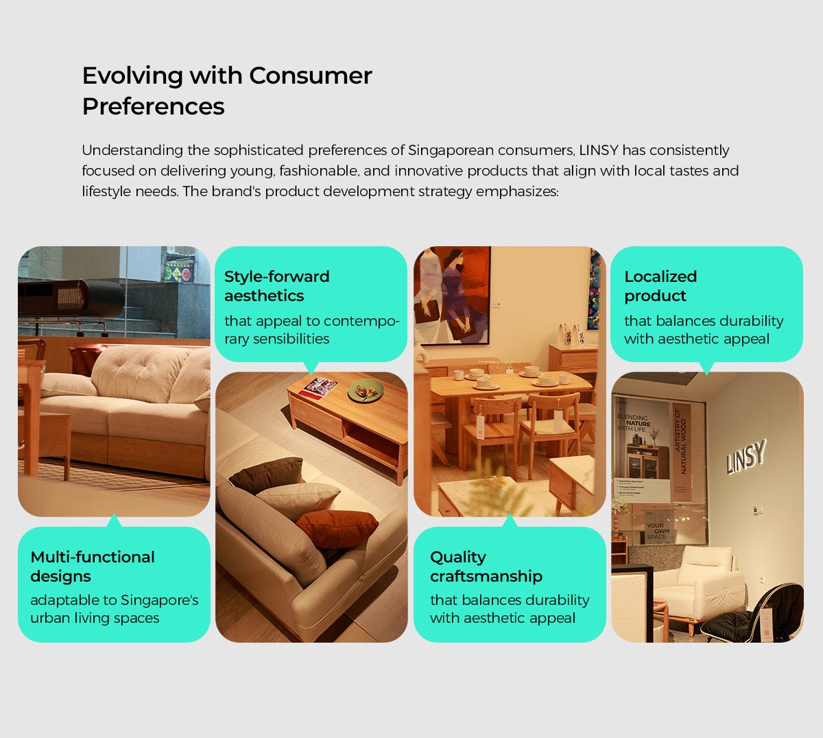 Desde sua entrada no mercado de Singapura em 2019, a LINSY tem consistentemente oferecido móveis para casa de alta qualidade, adaptados às preferências locais, conquistando feedback positivo do mercado e construindo uma base de clientes fiéis.
