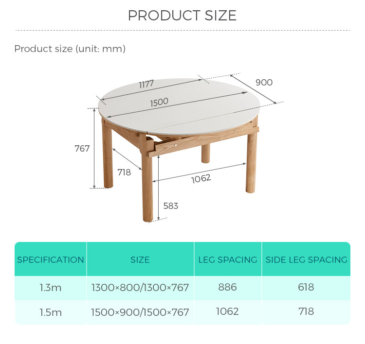 Design inteligente que economiza espaço: Transforma-se facilmente de um console compacto de 1,5 metro (ideal para 2 a 4 pessoas) em uma mesa expandida para 6 a 8 convidados. Libere espaço no chão quando mais precisar.