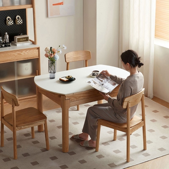 Perfeita para apartamentos aconchegantes, salas de estar integradas e espaços multifuncionais, ela é mais do que apenas uma mesa — é o seu local de jantar dedicado, uma mesa de trabalho focada, uma estação de artesanato criativa e uma superfície generosa para receber visitas, tudo em um só produto.