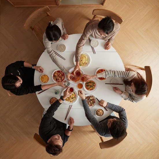 Multifuncionalidade de verdade: uma mesa para cada ocasião — desde refeições diárias e trabalho em casa até jantares festivos e noites de jogos em família. Ela se adapta sem esforço às suas necessidades diárias em constante mudança.