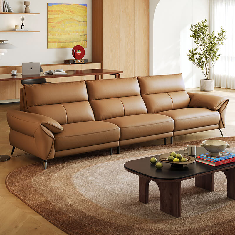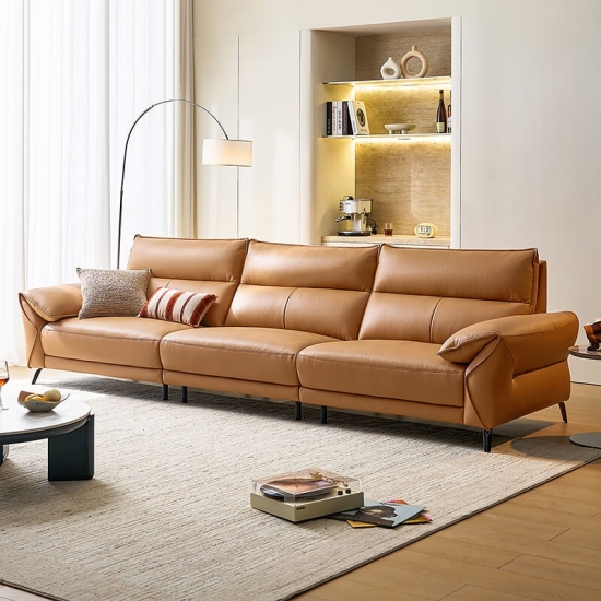 Sofá de couro de quatro lugares grande LINSY cor marrom chá PS282-B |