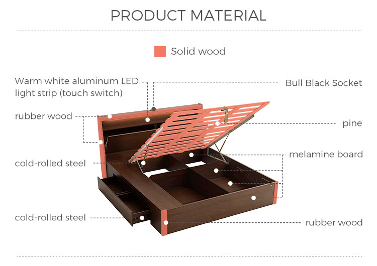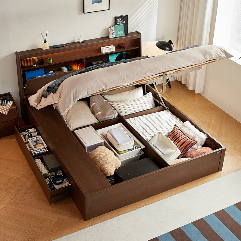 7Cama de armazenamento pneumática LINSY na cor nogueira UY2A-A