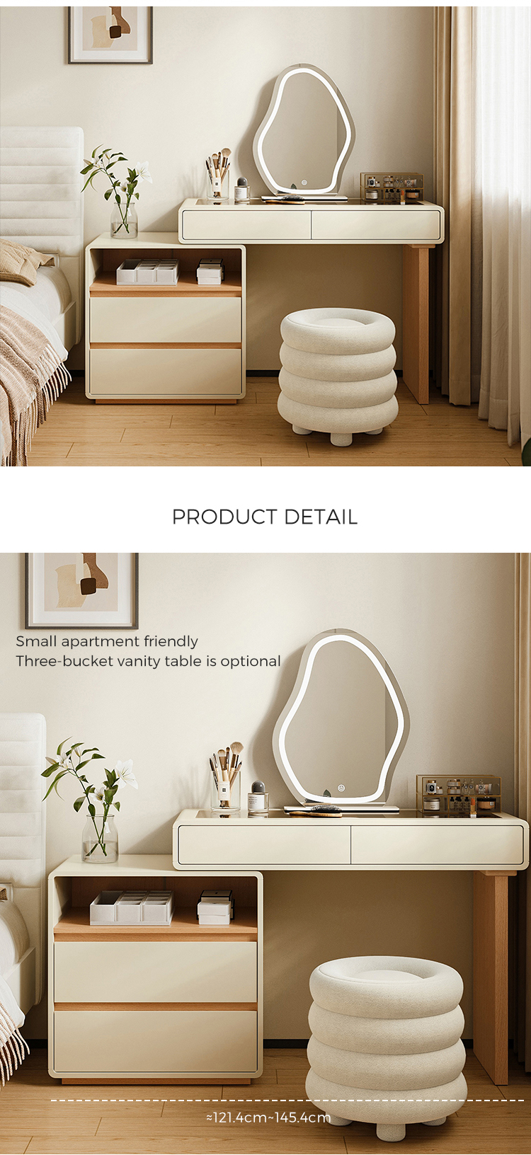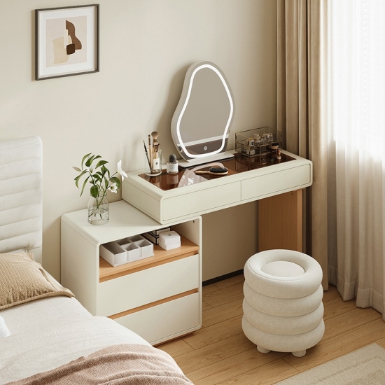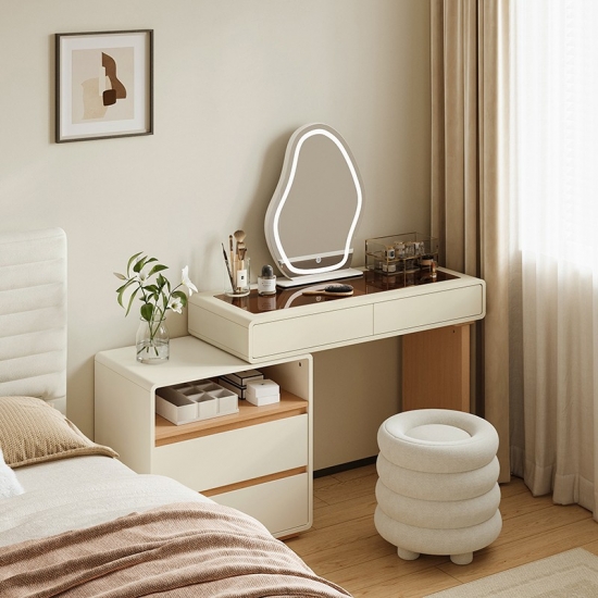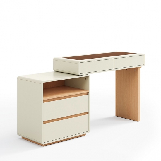 Olhando para a nova penteadeira da LINSY. Adicione um espelho e uma cadeira de penteadeira confortável ou um banquinho compacto para completar o quarto, e você terá um cantinho tranquilo para voltar a qualquer hora do dia.