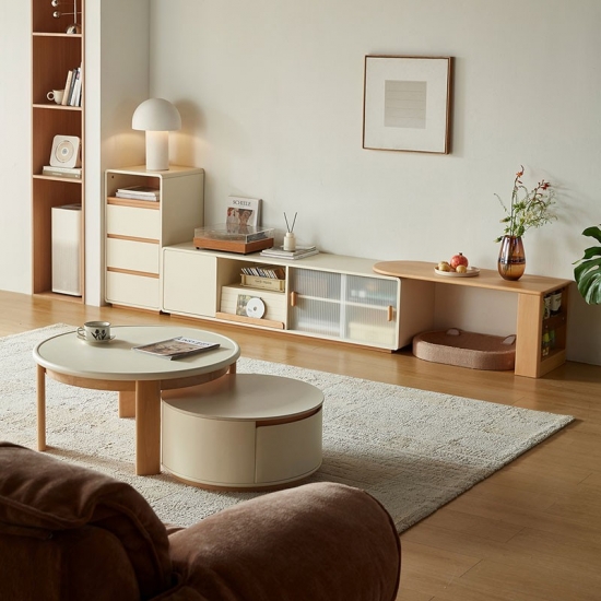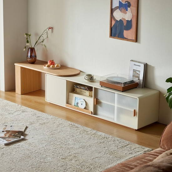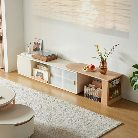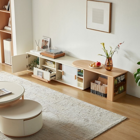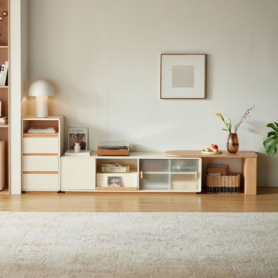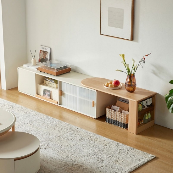 01. Largura ajustável – personalize para se adequar à sua TV e ao layout do ambiente.
