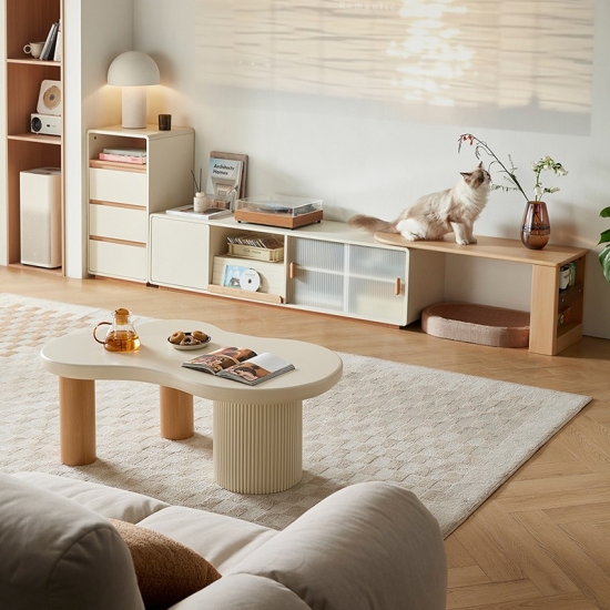 02. Amplo armazenamento – Prateleiras e armários para dispositivos de mídia, consoles e muito mais.