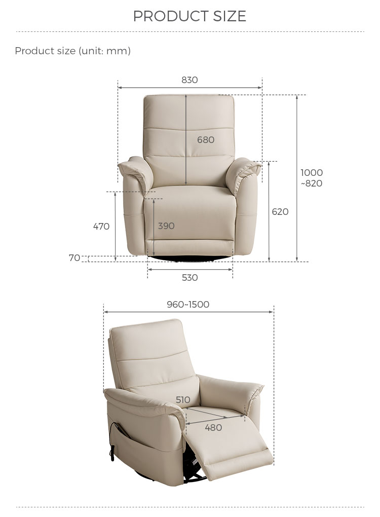 7Poltrona reclinável de couro para sala de estar e escritório G263-A