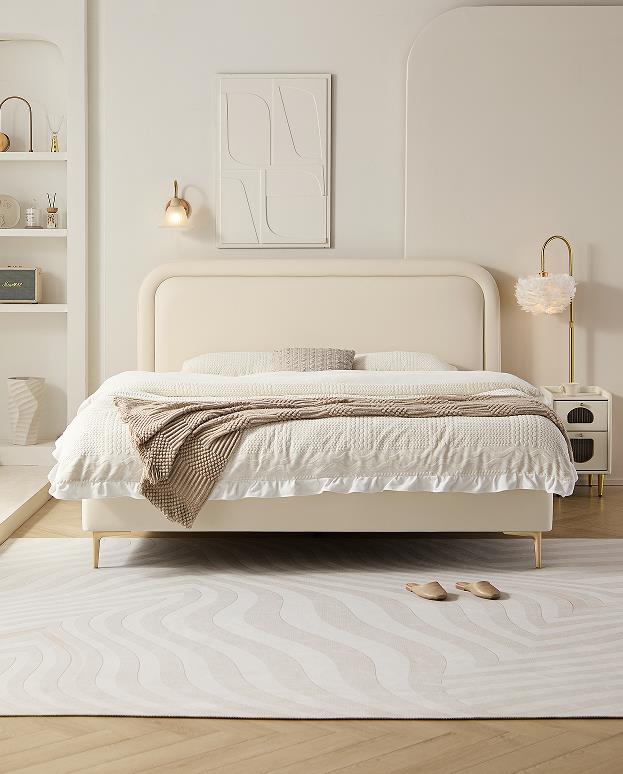 Make sure your bedroom is in a glamorous, luxurious style with this upholstered bed. The entire bed is framed in sturdy and high-quality pine wood and composite plywood with built-in carbon steel and pine wood bed slats. The headboard is made with breathable foam wrapped in easy-to-clean leather for adding softness and comfort. King size is large enough for you to sleep every day!