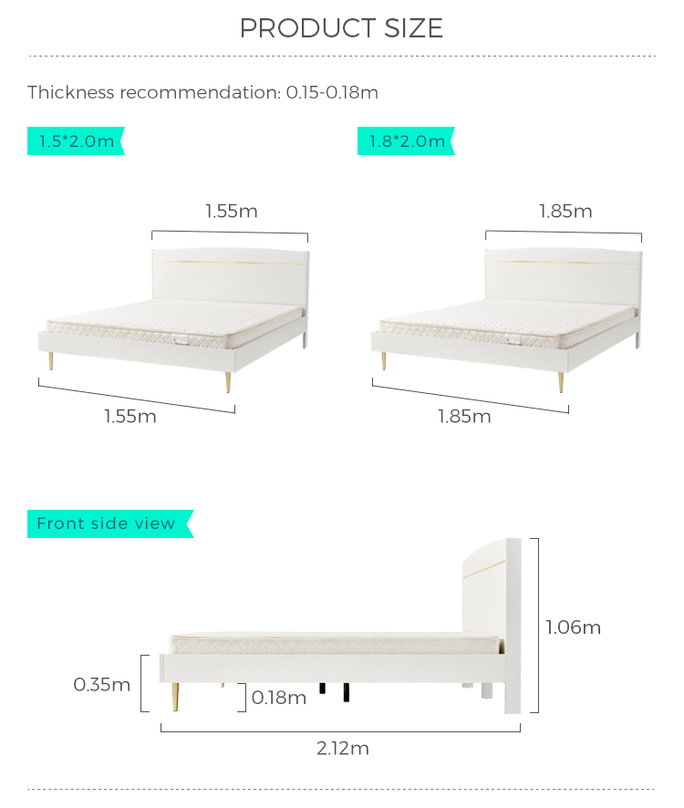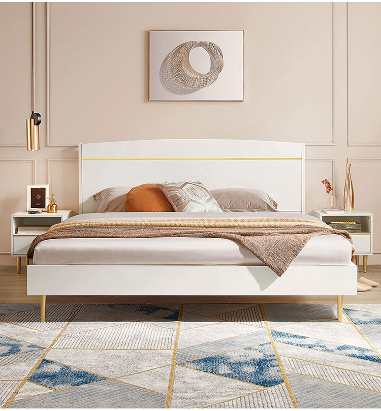 7Móveis de quarto modernos, cama de painel branca JH1A-A1
