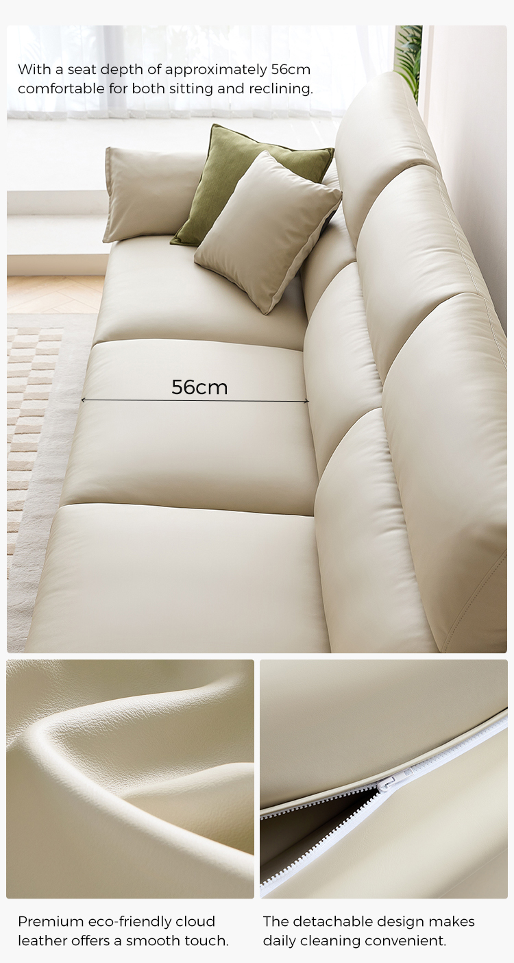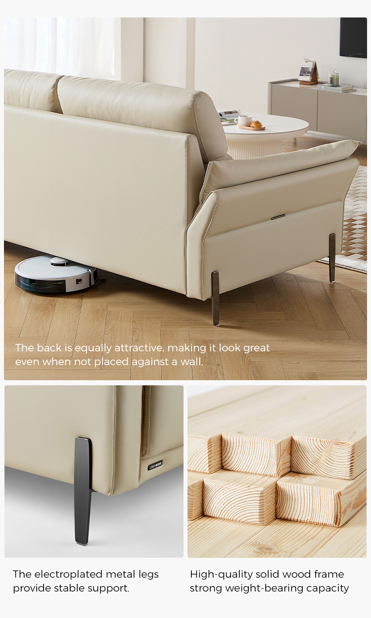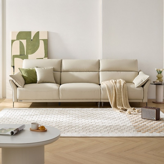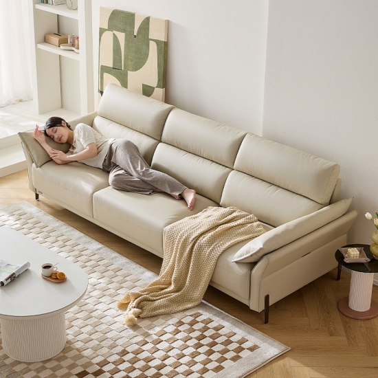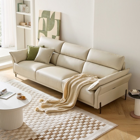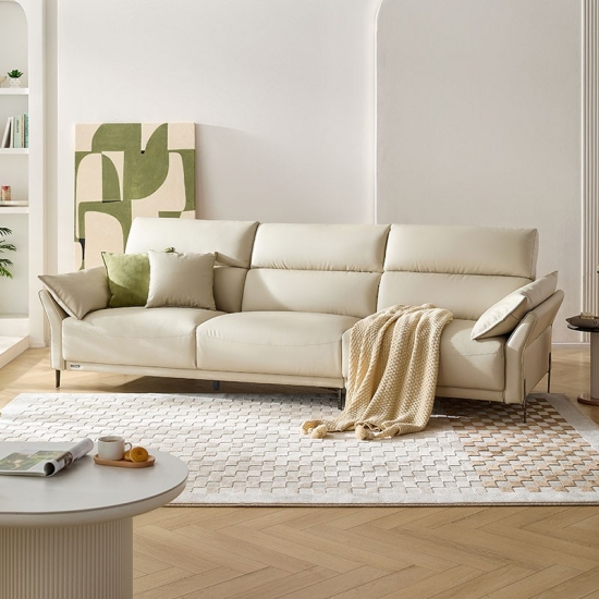 Sofá de couro moderno de cor bege com três lugares para sala de estar em hotel, uso BS258-A |
