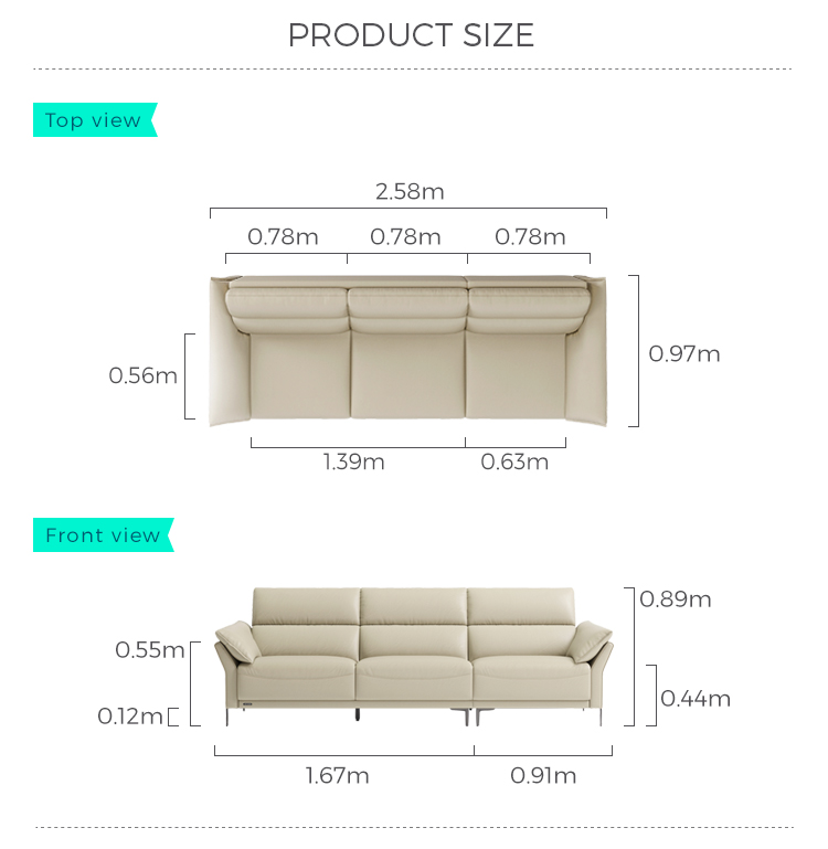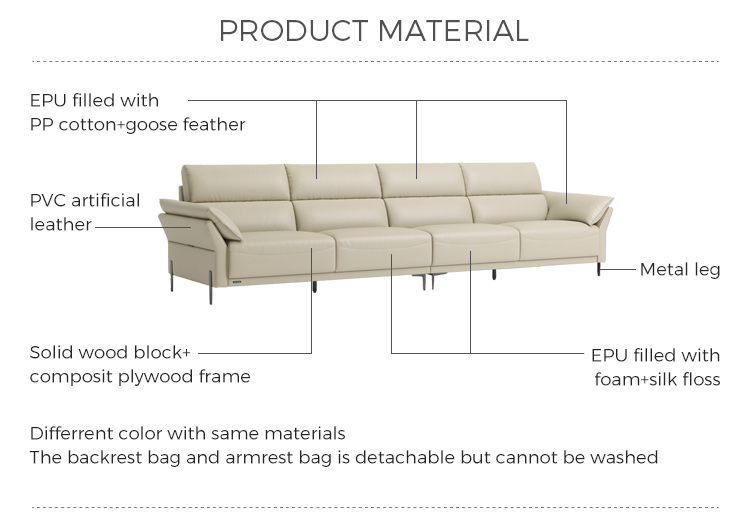 7Sofá de couro moderno de três lugares em cor bege para sala de estar em hotel, use BS258-A