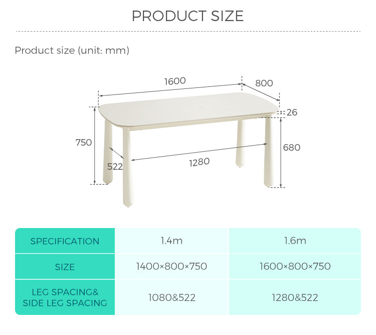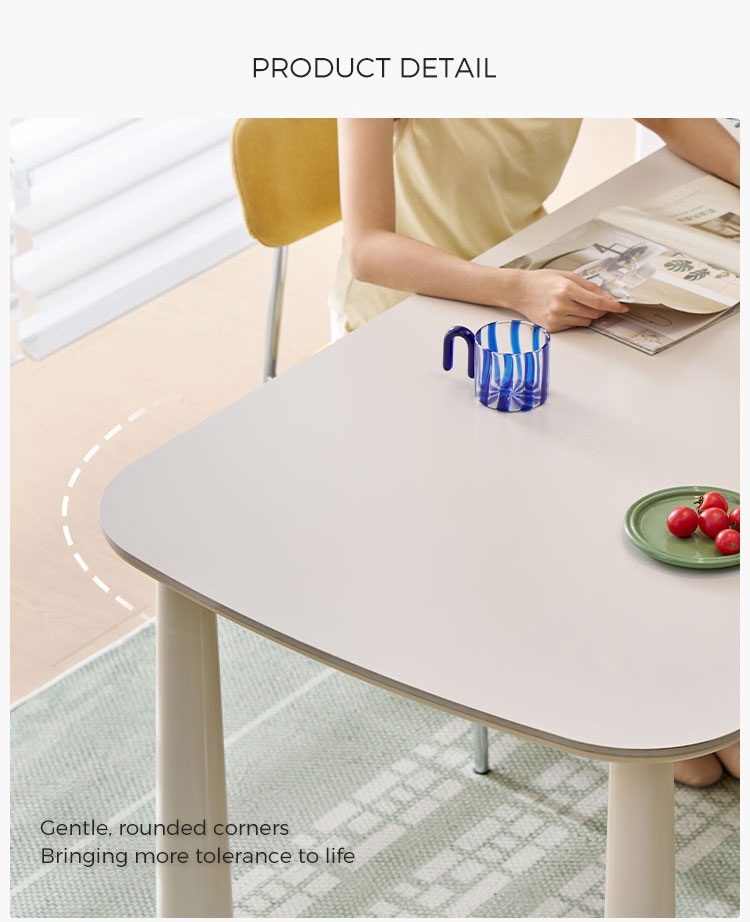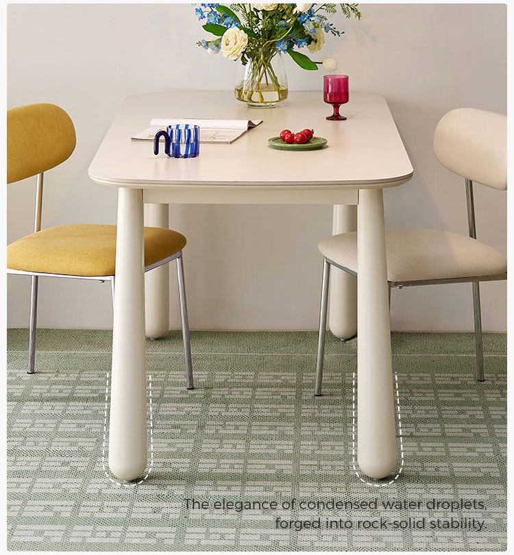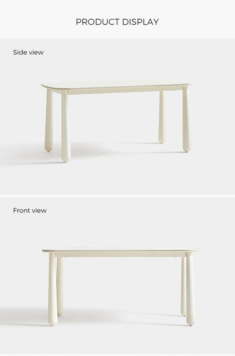 Reúna-se com estilo nesta elegante mesa de jantar. Com um acabamento suave em branco creme e um formato retangular espaçoso, ela foi projetada para a vida moderna. Pode ser usada tanto em residências quanto em hotéis.